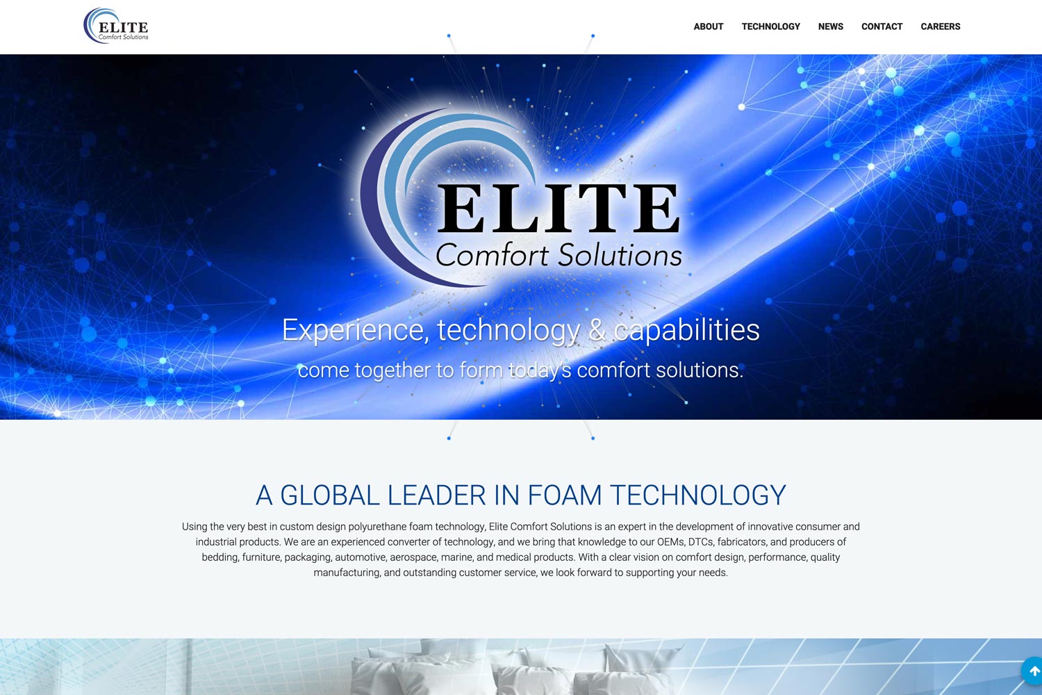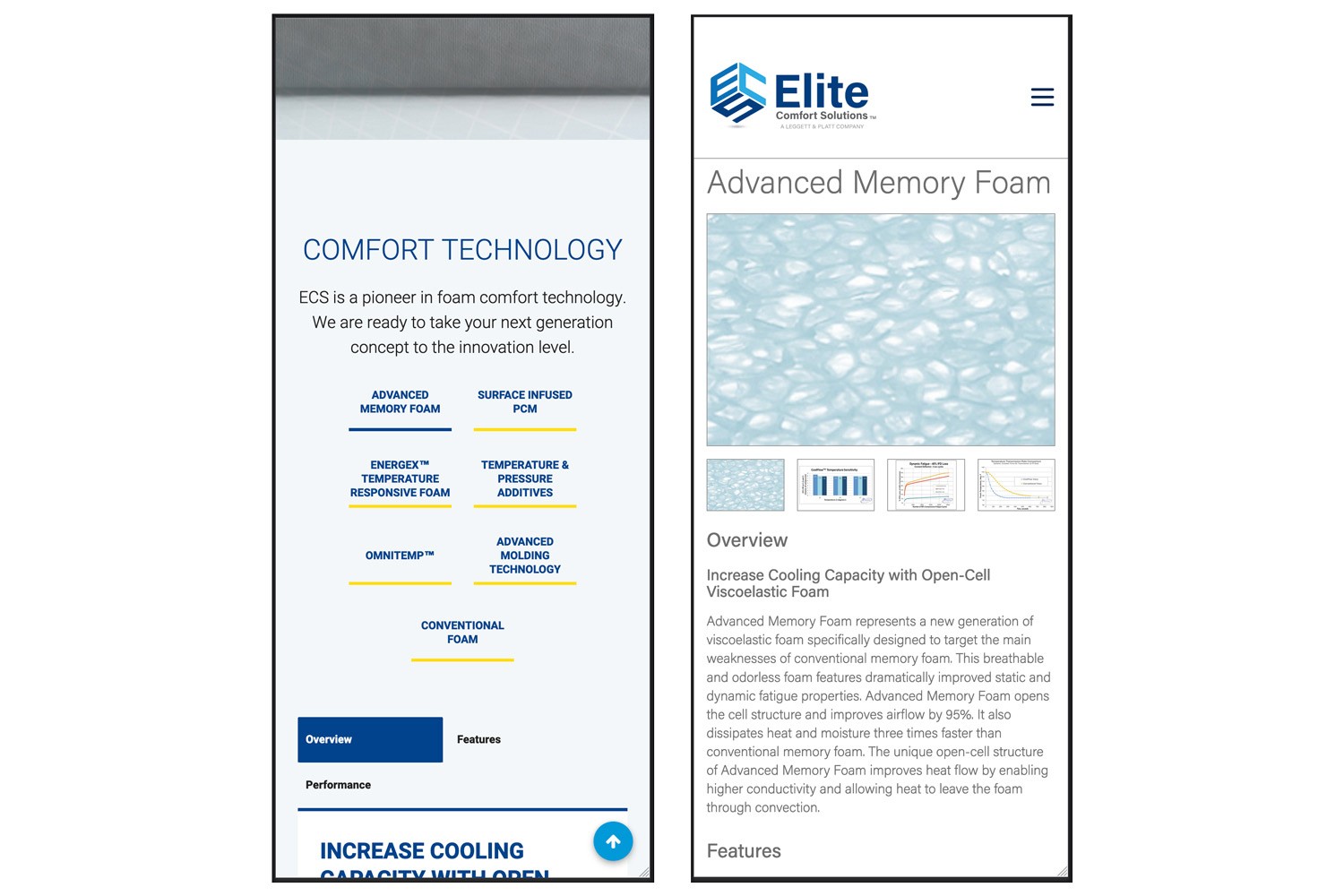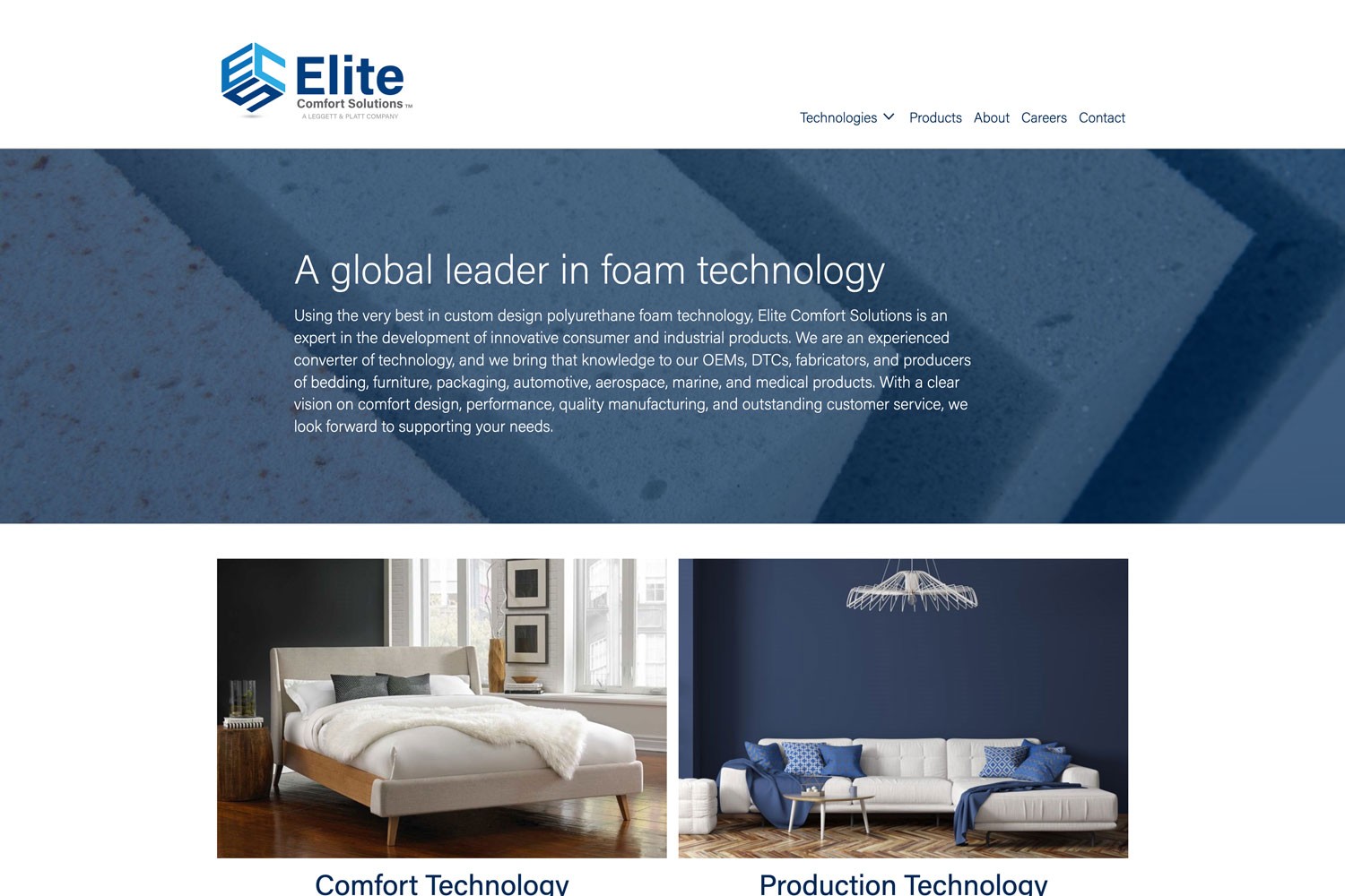 When Elite Comfort Solutions was acquired by Leggett & Platt, our team was tasked with working with ECS to bring their site up to L&P brand and content standards while also adding functionality and visual improvements to enhance the site’s appeal to consumers.